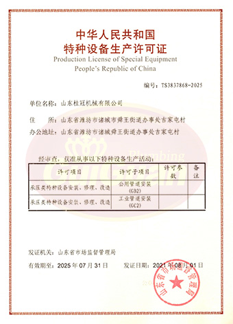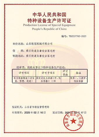 山東桂冠機械有限公司成立于2008年,注冊資金1600萬元,現(xiàn)有員工200多人,中高級技術(shù)管理人員45人,占地面積27000多平方米,生產(chǎn)車間面積12000多平方米。公司具備壓力容器產(chǎn)品的設(shè)計、制造(證書編號為:TS2237703-2025)、壓力管道安裝(證書編號為TS3837607-2025)全套壓力容器資質(zhì);通過國家ISO9001質(zhì)量管理體系認證、美國ASME認證、歐盟CE認證;擁有建筑安裝機電工程專業(yè)承包叁級資質(zhì)、建筑工程施工總承包叁級資質(zhì)及對外貿(mào)易經(jīng)營出口權(quán)…